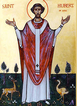 Святой Губерт (Хуберт или Хубертус) родился предположительно в 656-658 г., возможно в г. Тулуза, Франция, отошел ко Господу 30 мая, 727 или 728 г. в местечке Терверен, что рядом с Брюсселем (Бельгия). Назван "апостолом Арденн", был первым епископом г. Льеж в Бельгии. Губерт - общехристианский святой (жил до разделения церквей в 1054 году), считается покровителем охотников, математиков, оптиков, механиков, а также его считают святым, имеющим от Бога благодать исцелять бешенство. Святый Губерт широко почитался ещё в Средние века. Его жизнеописание обычно путается с фрагментами жития св. Евстафия Плакиды.